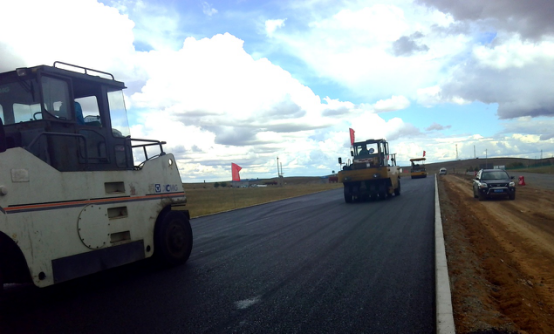 張勇深知實干出業(yè)績,拼搏出成效。魏然屹立于沿線K14公里處和K29公里處的兩座水穩(wěn)站、一座瀝青站和混凝土攪拌站完美地詮釋了他的拼搏精神。K23---K30山體石方段屬于高挖方高填方地段,需爆破開挖,爆破山體最高達12米,工程建設(shè)尤為艱巨。在四個多月的時間里,張勇與施工人員奮戰(zhàn)在風沙肆虐中,那數(shù)臺挖掘機開挖山體,滿載土石方工程車輛穿梭其間的場景,讓人感到建設(shè)的艱辛與厚重。
