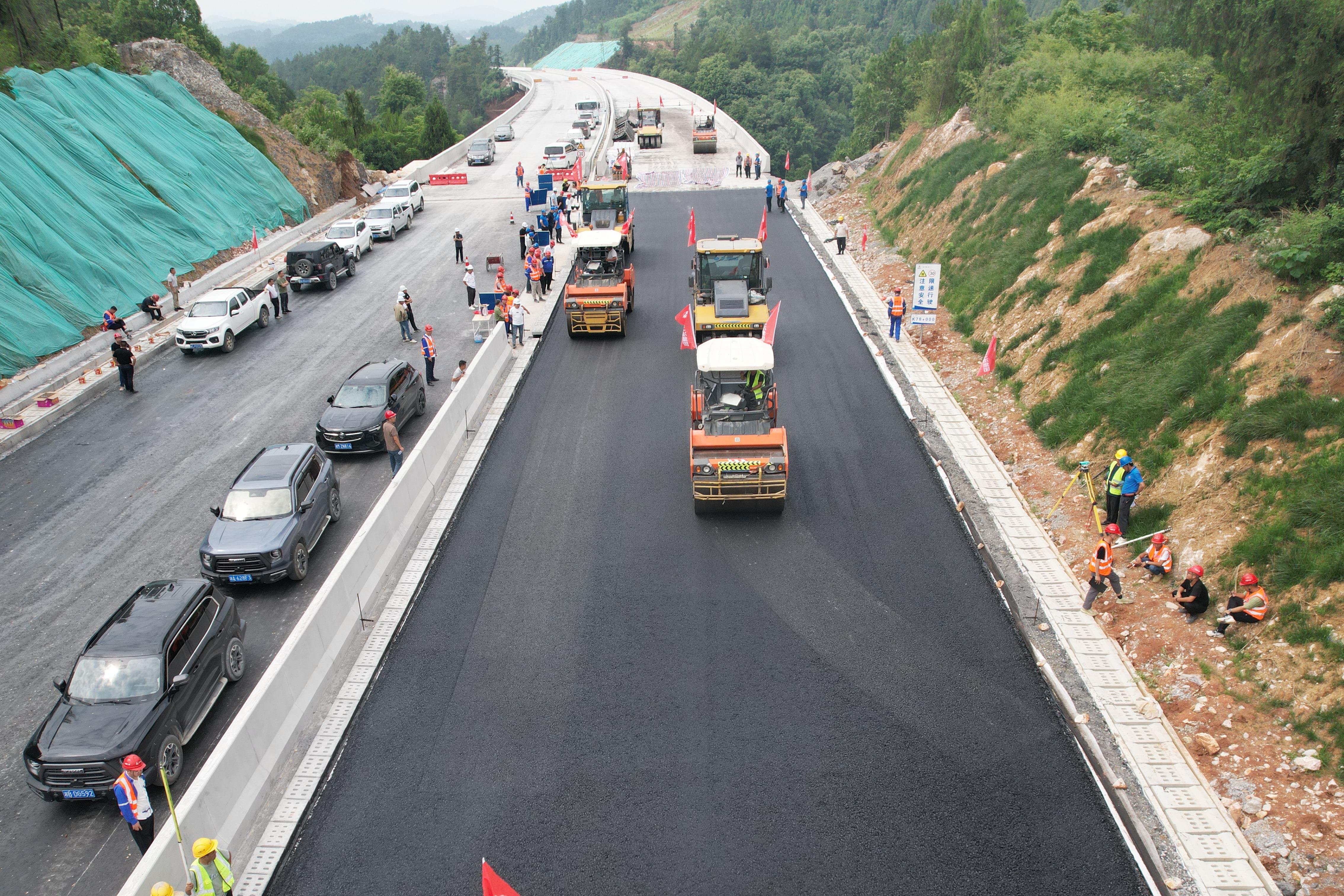 G59新新高速作為連通湖南新化至新寧的重要通道,建成后將顯著提升區域交通效率。本次瀝青攤鋪的全面推進,為項目年底通車目標奠定了堅實基礎。