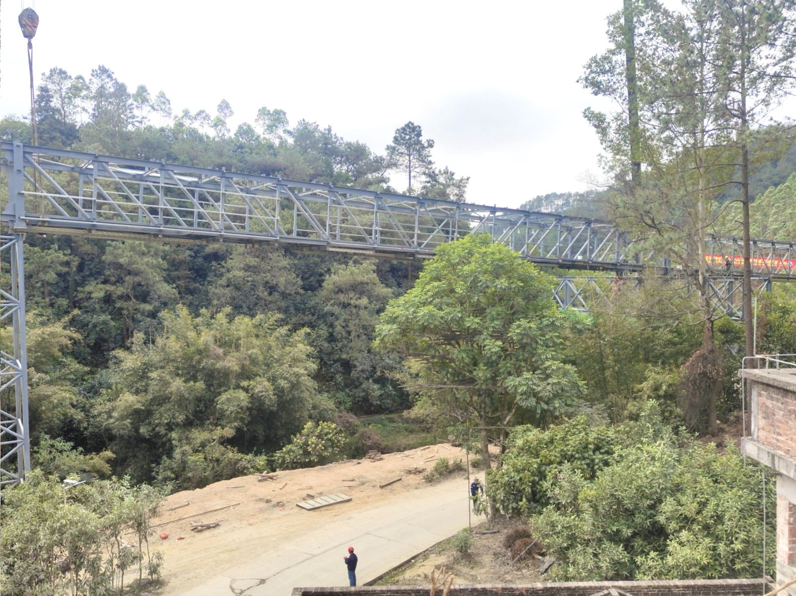 肇慶皮帶連廊項目是當(dāng)?shù)赝晟啤暗V山-廠區(qū)-港口”聯(lián)動運輸格局的重要配套工程,建成后將實現(xiàn)物料全封閉、低能耗輸送,大幅降低運輸過程中的粉塵污染,契合肇慶打造粵港澳大灣區(qū)西江內(nèi)河航運樞紐中心、推動綠色建材產(chǎn)業(yè)升級的發(fā)展規(guī)劃。其中9#~13#高架作為項目關(guān)鍵控制性工程,施工區(qū)域地形復(fù)雜,高空作業(yè)多、精度要求高,對施工組織和技術(shù)管控提出嚴(yán)苛挑戰(zhàn)。