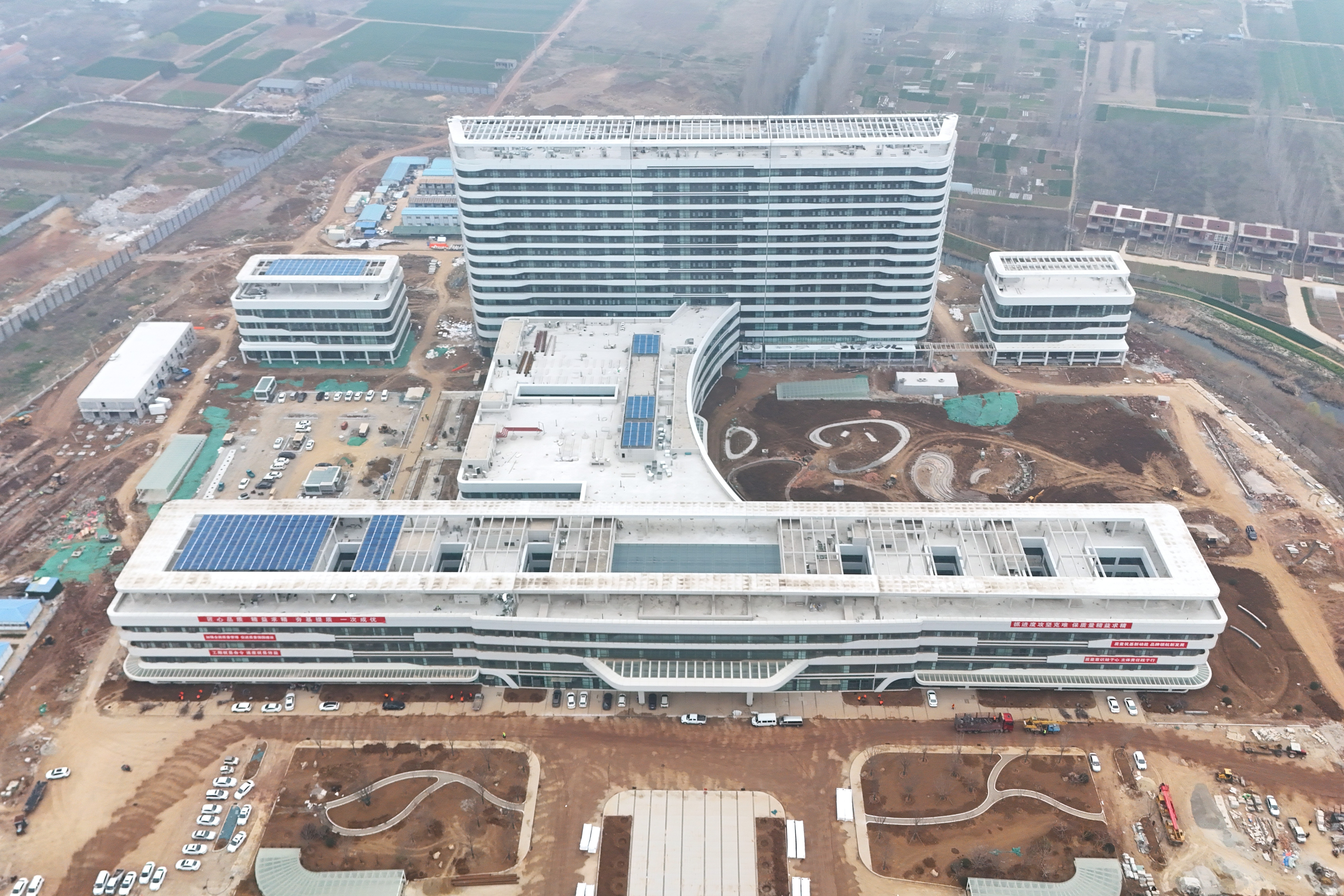 截至目前,項(xiàng)目門診樓、醫(yī)技樓、感染樓、后勤樓裝飾裝修完成90%;住院樓裝飾裝修完成70%,外墻裝飾完成90%;地下室人防區(qū)域機(jī)電安裝完成60%,室外管網(wǎng)完成50%。總體進(jìn)度正按計(jì)劃高效推進(jìn)。