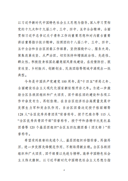 中國二冶團委榮獲2020年度內蒙古自治區和中冶集團“五四紅旗團委”榮譽稱號