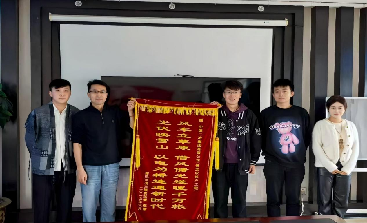 錦旗上題寫“風(fēng)車立草原,借風(fēng)儲光送暖千萬帳;光伏映雪山,以電為橋連通新時代”,生動詮釋了項目的核心價值與深遠意義。新巴爾虎左旗政府表示,該項目地處內(nèi)蒙古偏遠牧區(qū),氣候條件惡劣、交通出行不便,整體施工環(huán)境極為艱苦。面對挑戰(zhàn),項目管理團隊充分發(fā)揮技術(shù)與管理優(yōu)勢,始終以“高標準、高質(zhì)量、高效率”為施工準則,全力克服物資運輸困難、極端天氣影響等多重難題,最終如期完成節(jié)點任務(wù)。該項目的順利推進,不僅成功解決了當(dāng)?shù)剞r(nóng)牧民的急難愁盼問題,直接惠及數(shù)百戶農(nóng)牧民家庭,顯著提升了牧區(qū)群眾的生活品質(zhì);更通過產(chǎn)業(yè)配套升級,為當(dāng)?shù)亟?jīng)濟可持續(xù)發(fā)展注入了新動能,為邊疆牧區(qū)發(fā)展奠定了堅實基礎(chǔ)。