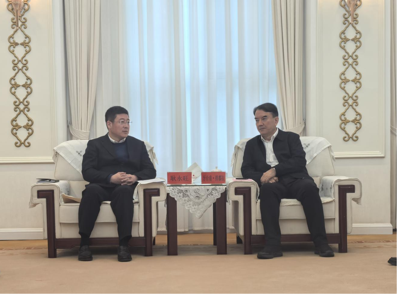 牙合甫·排都拉對耿永旺一行到訪表示歡迎,并詳細(xì)介紹了烏魯木齊市的發(fā)展優(yōu)勢、發(fā)展布局及相關(guān)政策支持,期待雙方能夠進(jìn)一步深化戰(zhàn)略合作,著力推動雙方合作不斷走深走實。