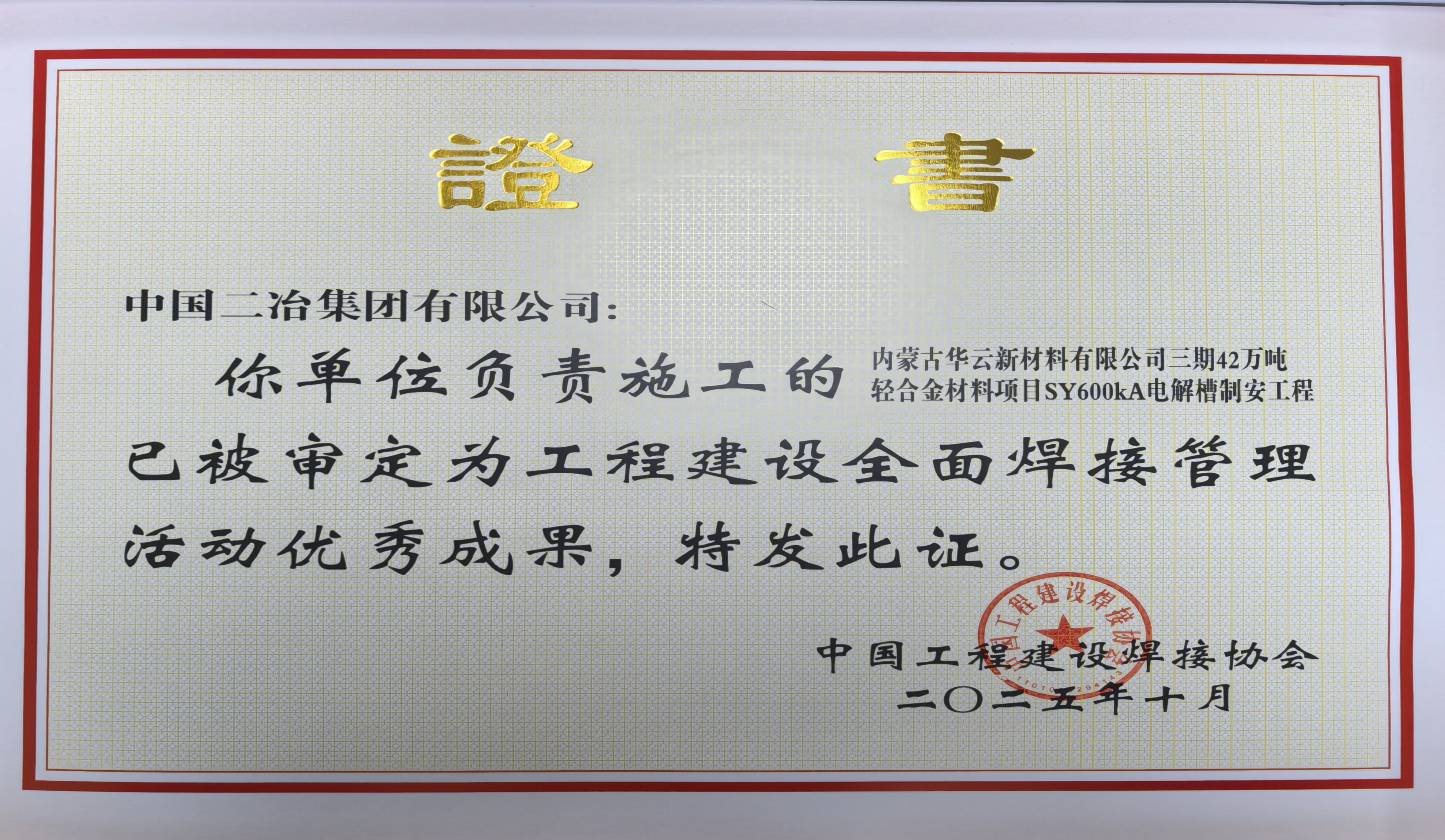 此次獲獎,充分彰顯了中國二冶在焊接技術創新與工程質量管理方面的綜合實力。下一步,將持續深化焊接管理實踐,推廣成熟技術經驗,以更嚴格的標準、更先進的工藝打造更多精品工程,為公司高質量發展貢獻力量。