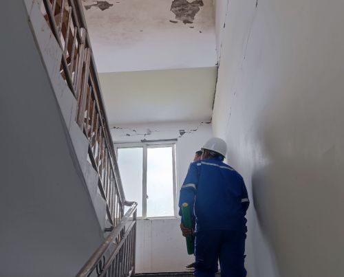 “有人嗎,我們是瀘州老窖智能化包裝中心技改項目先鋒隊,我們來看一下房屋受損情況”。在當(dāng)?shù)赝ㄐ殴ぷ魅藛T的帶領(lǐng)下,先鋒隊一家一戶地進(jìn)行排查,但由于部分道路狹窄濕滑,車輛無法通行,只能靠步行前往,先鋒隊員們不畏路途艱難,按照既定時間完成排查工作。在排查過程中,發(fā)現(xiàn)部分機房墻外墻全是裂痕,房屋外墻墻磚脫落,吊頂零星震落在地,先鋒隊員們第一時間評估受損情況,全面開展隱患排查,反復(fù)叮囑周邊群眾遠(yuǎn)離危險區(qū)域。一位先鋒隊員說道:“關(guān)鍵時刻看擔(dān)當(dāng),抗震救災(zāi),就是展現(xiàn)央企責(zé)任與擔(dān)當(dāng)?shù)臅r刻,我們要盡最大的能力,抓緊時間來檢測房屋受損情況,讓災(zāi)區(qū)人民早日放心”。