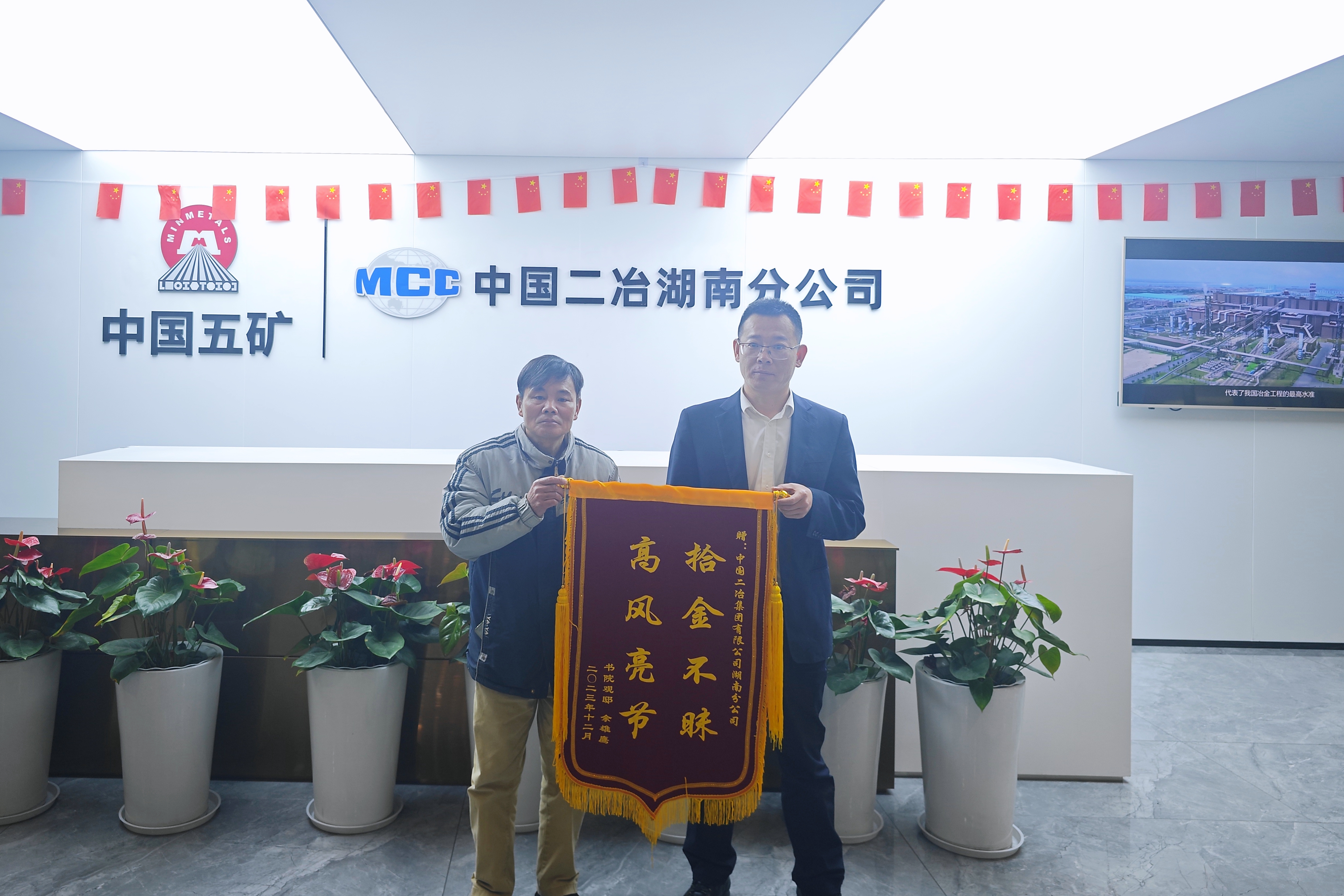 12月29日,長沙市書院觀邸小區(qū)居民佘先生將一面印有“拾金不昧 高風(fēng)亮節(jié)”的錦旗送到了湖南分公司,對(duì)中國二冶湖南分公司職工郭振華拾金不昧的善舉表示感謝。