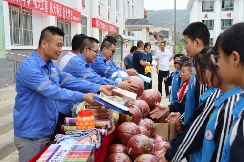 景禮項目黨支部為禮縣崖城鎮九年制學校送去了書籍、籃球等體育用品和學習用品,并鼓勵孩子要汲取力量,樹立信心,做一個臉上有笑容、心中有陽光的孩子,用一顆感恩的心、以優異成績回報父母,回報社會。