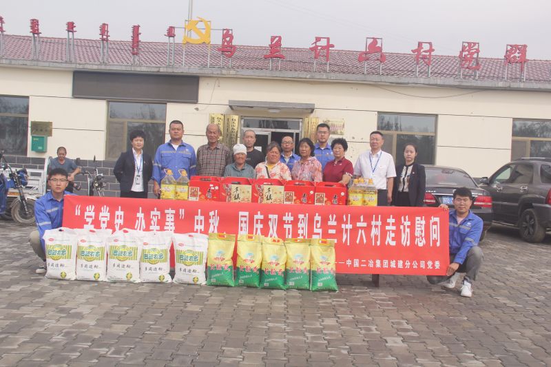 九月秋風送爽,九月丹桂飄香,帶著“永遠跟黨走”的信念和初心。9月13日,中國二冶城建分公司開展“學黨史 辦實事”中秋.國慶雙節到烏蘭計六村走訪慰問活動,共同與當地困難群眾歡度中秋,歡慶祖國92歲生日。