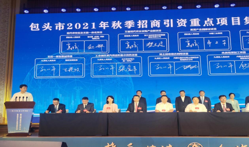 本次集中簽約項目共 45 個,計劃總投資 1160 億元,涉及 14 個產(chǎn)業(yè)領(lǐng)域。簽約大會由中共包頭市委員會、包頭市人民政府主辦。本次大會簽約項目主要集中在綠色低碳領(lǐng)域。通過現(xiàn)場簽約與網(wǎng)絡(luò)簽約相結(jié)合的模式。其中,現(xiàn)場簽約項目共26個、網(wǎng)絡(luò)視頻簽約項目共19個,共簽訂合作項目45個,簽約項目中涉及世界500強(qiáng)企業(yè)6個、中國500強(qiáng)企業(yè)4個、中國民營500強(qiáng)企業(yè)2個。計劃總投資 1160億元,助力綠色低碳環(huán)保循環(huán)經(jīng)濟(jì)持續(xù)發(fā)展。